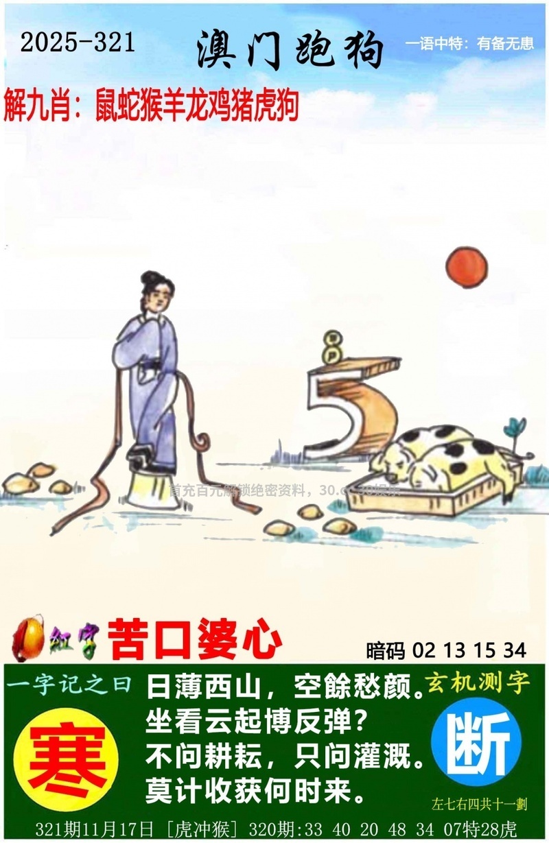 | 321期:⑦肖 | 牛蛇龙兔狗羊猴 | 开:羊23 |